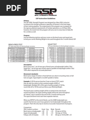 Bench Press Test Squat Test Ssp Instruction Guidelines Pdf Weight Training Recreation